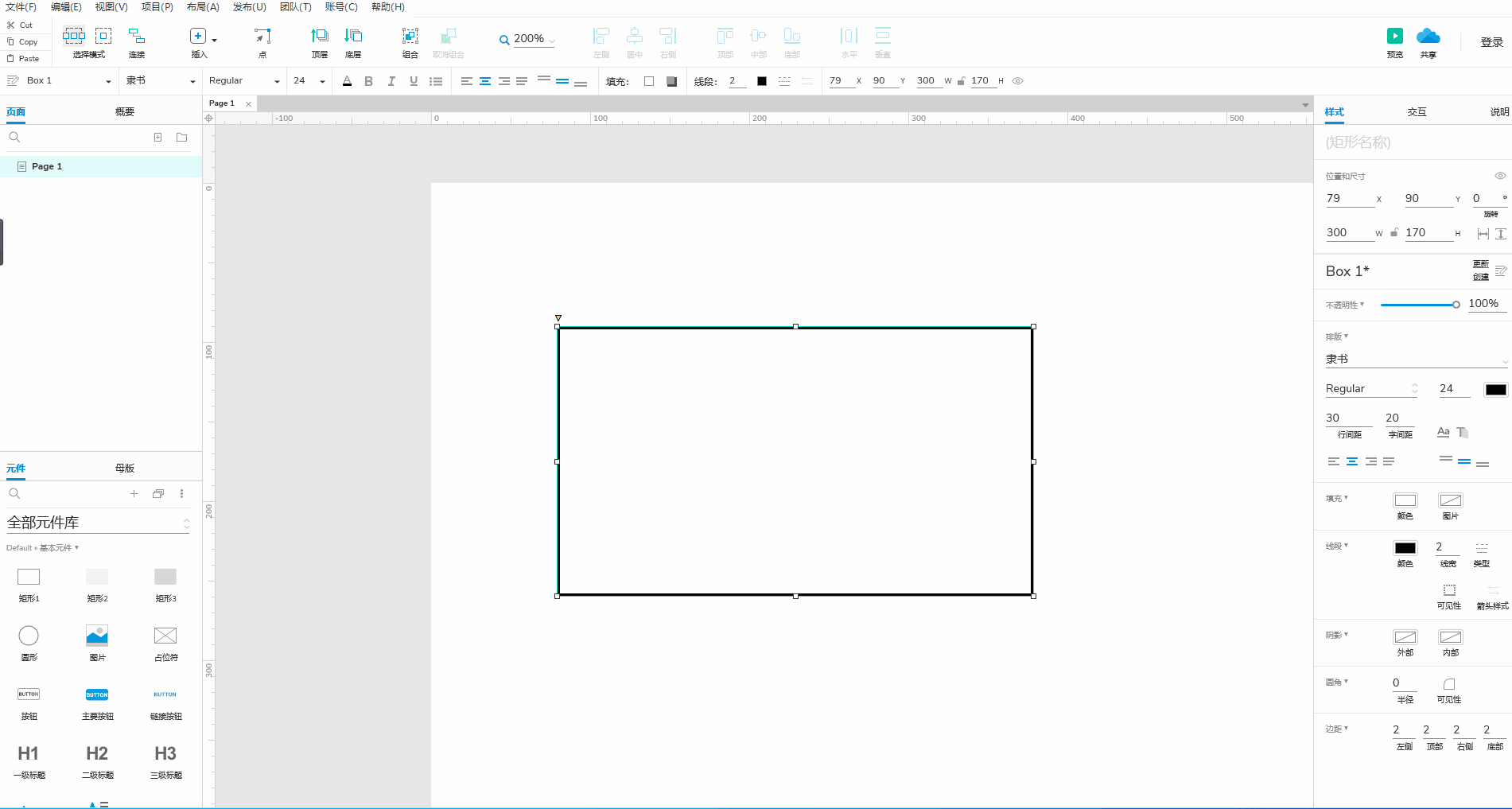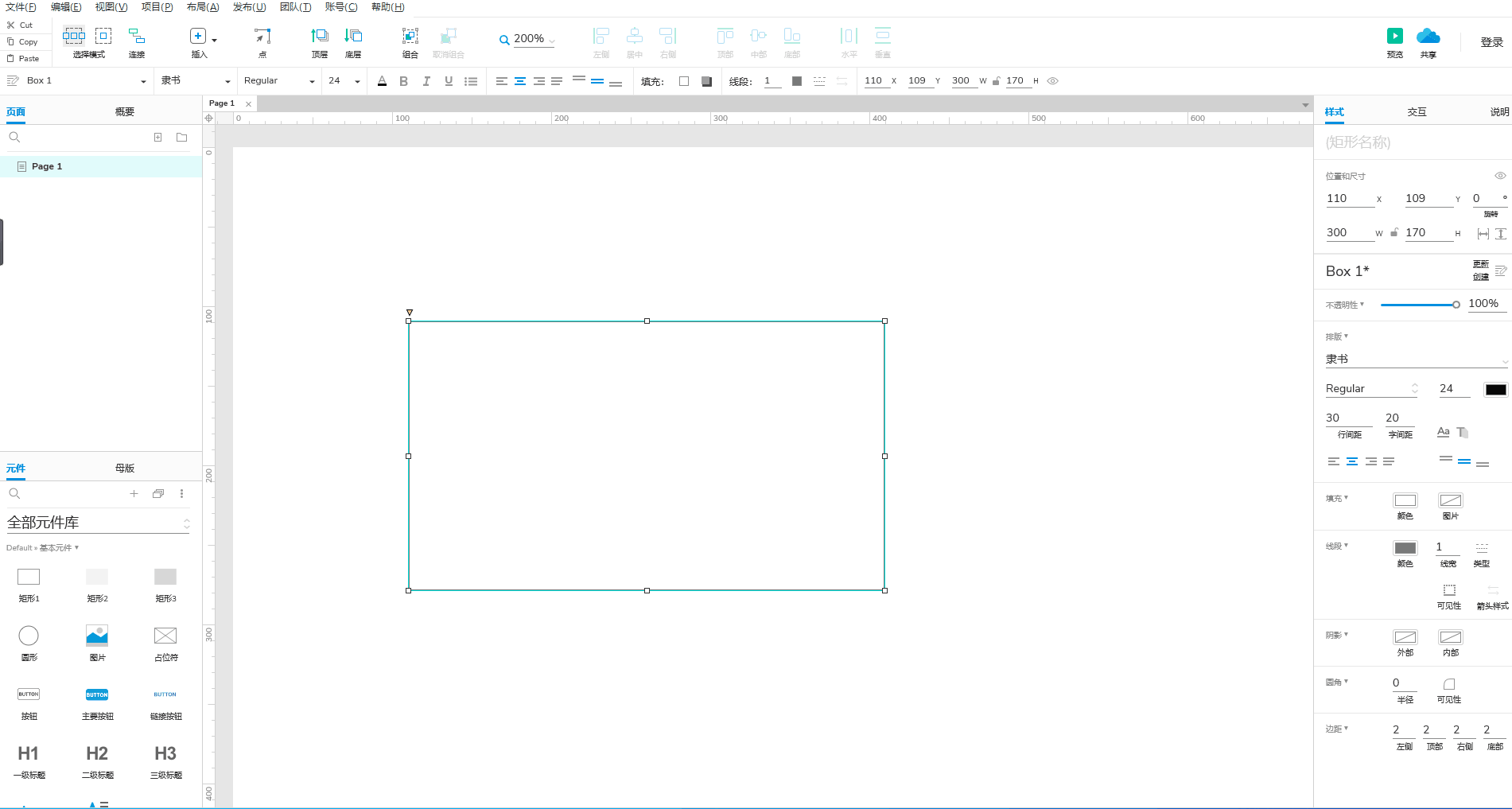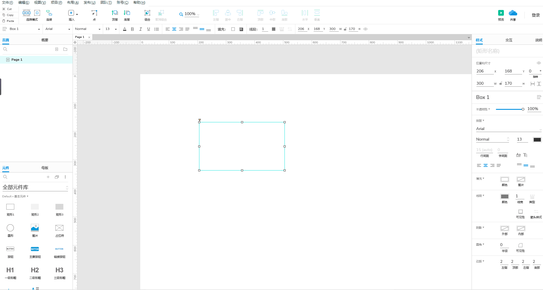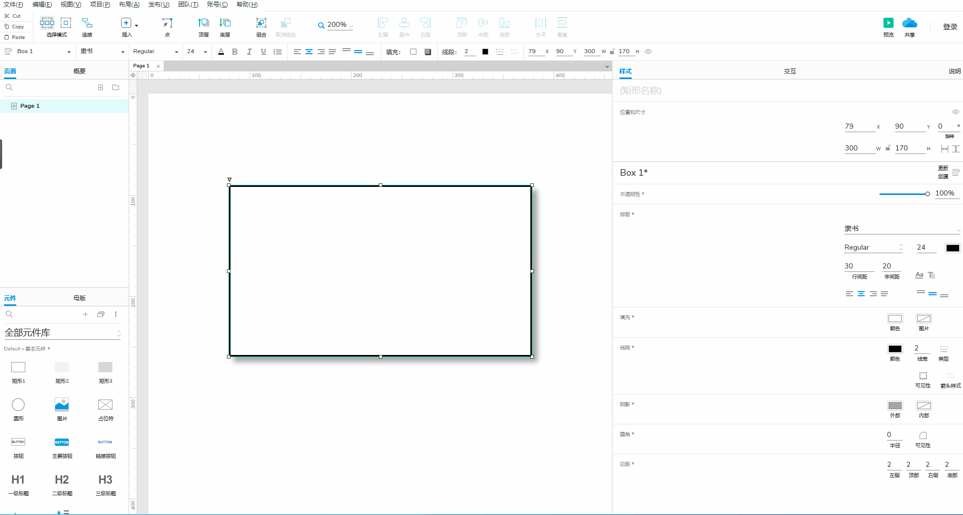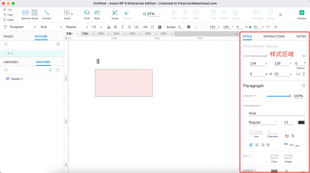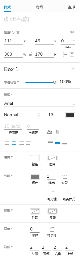 样式区域主要进行元件的样式的修改。本文主要对基本样式进行讲解,元件特有的样式将在元件区域中进行详细说明。(以矩形为例)