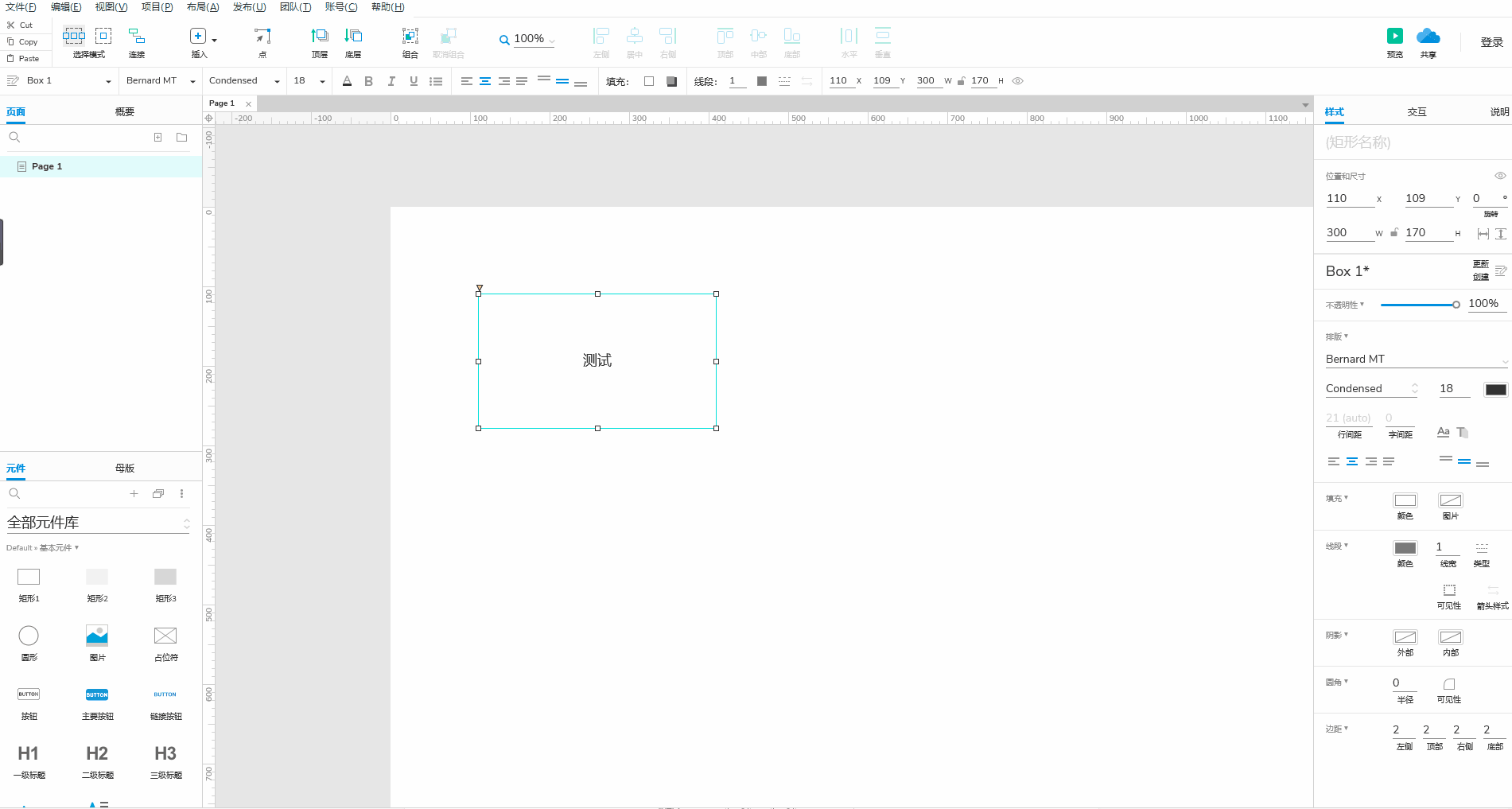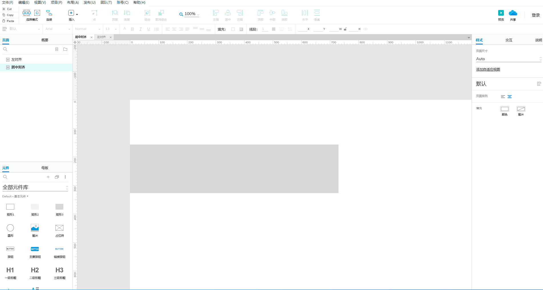 - 居中对齐:将页面元素居中对齐(在制作原型中比较常用于后台页面和网页的展示)。