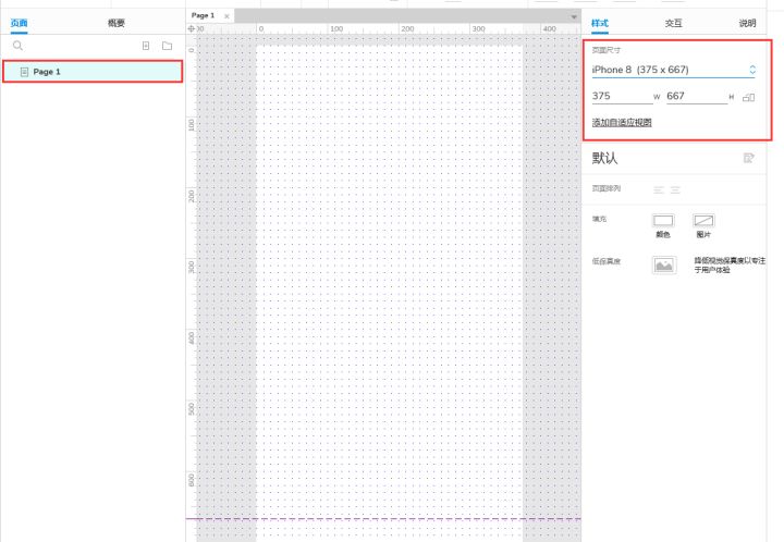 可以在选中页面后,在页面的样式一栏进行编辑当前页面的尺寸。例如设置画布区域为手机样式。
