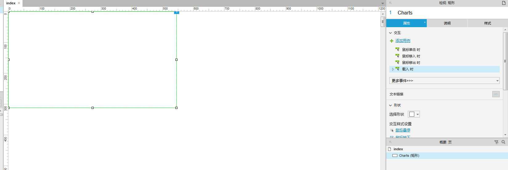 在axure界面里拖入矩形,并命名为“Charts” (可以自己定义名称,但要与js代码【data-label】里的一致)。