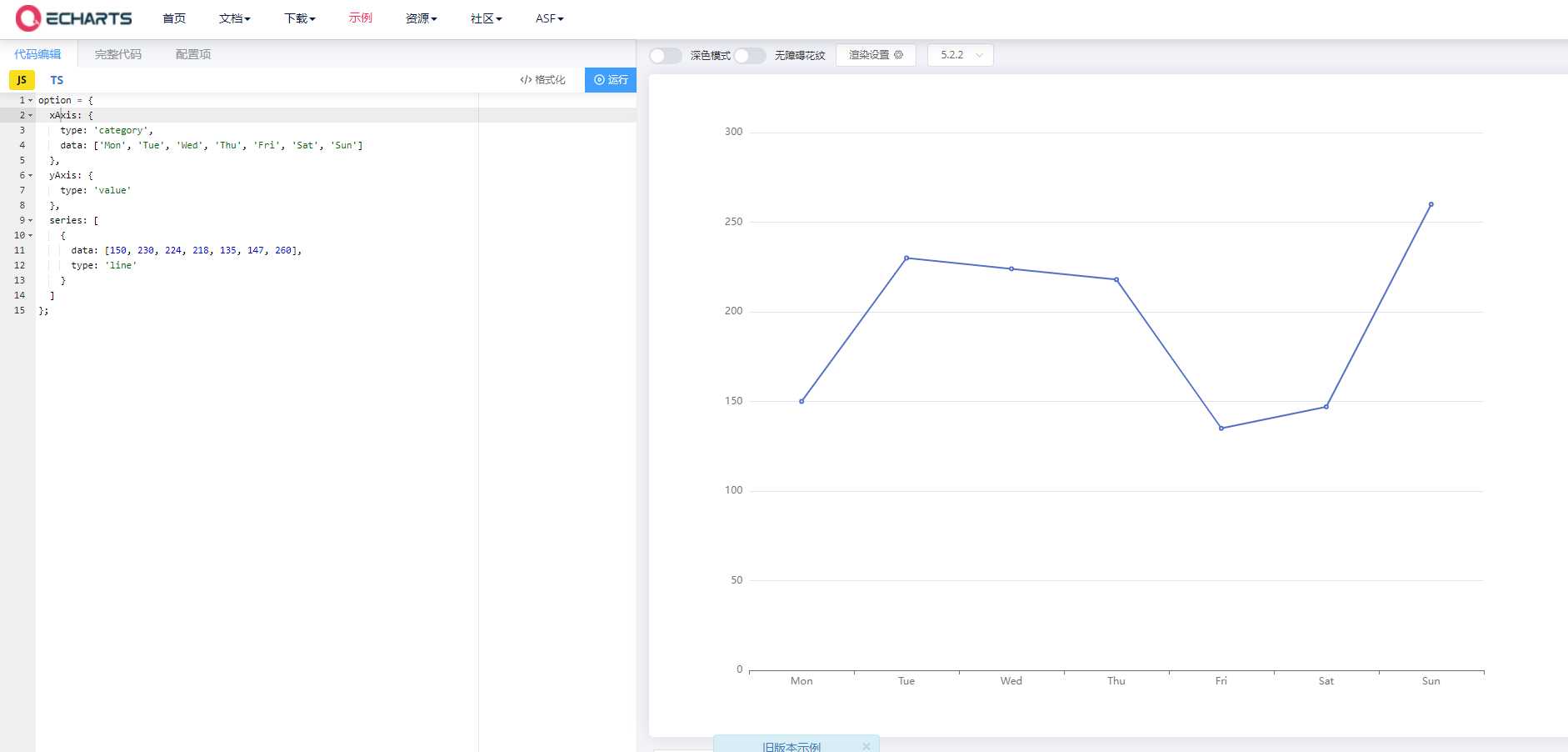data: [150, 230, 224, 218, 135, 147, 260], type: ‘line’