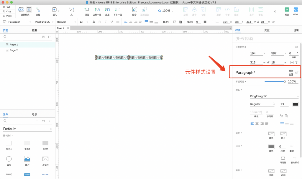 元件样式库可以自定义元件的样式,包括字体颜色、填充颜色、线段颜色等非常常见和全面的样式设置,基本能够满足日常需求,设置完样式后可以保存下来方便后续使用