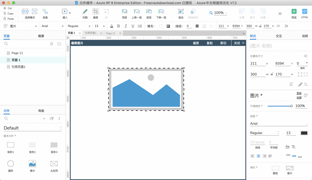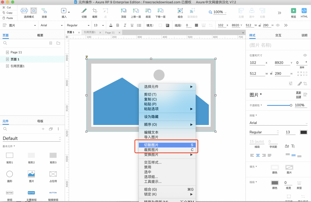 当元件是图片类型时,可以通过切割图片或者裁剪图片对图片进行编辑,从而得到想要的图片尺寸和内容。